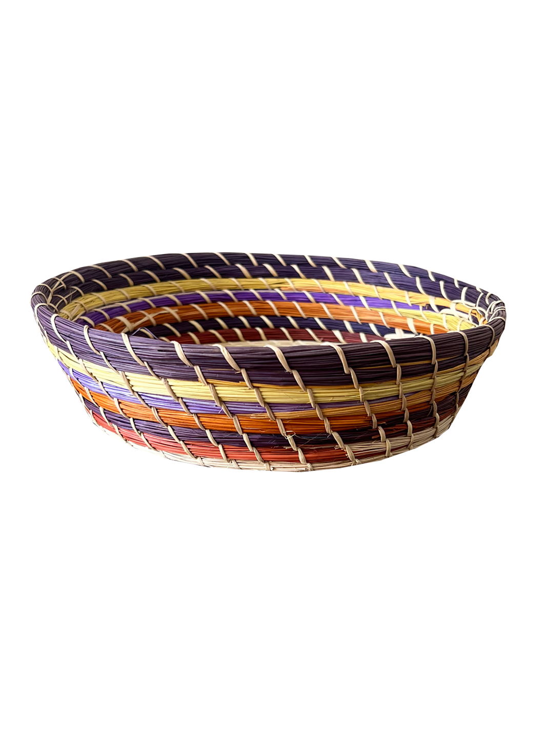 Canastos tejidos en palma de Iraca, pintados en diversos colores. Fueron tejidos en el Putumayo por 6 mujeres que iniciaron tejiendo sombreros de Iraca en las ruinas de la casa de una de las asociadas destruida por la avalancha en el barrio San Miguel en Mocoa. Poco a poco, gracias a su dedicación y perseverancia, avanzaron con otros productos y hoy se destacan por su calidad e innovación. Buscan recuperar, conservar y transmitir las tradiciones campesinas en especial los tejidos de Iraca