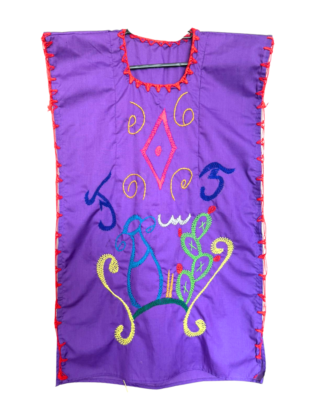 El wsyuushein o manta Wayuu original es un símbolo representativo de la cultura guajira. Estas diseñadas para bebes mantienen las características tradicionales: sus bordados, los colores y la amplitud para que quede suelta al cuerpo.