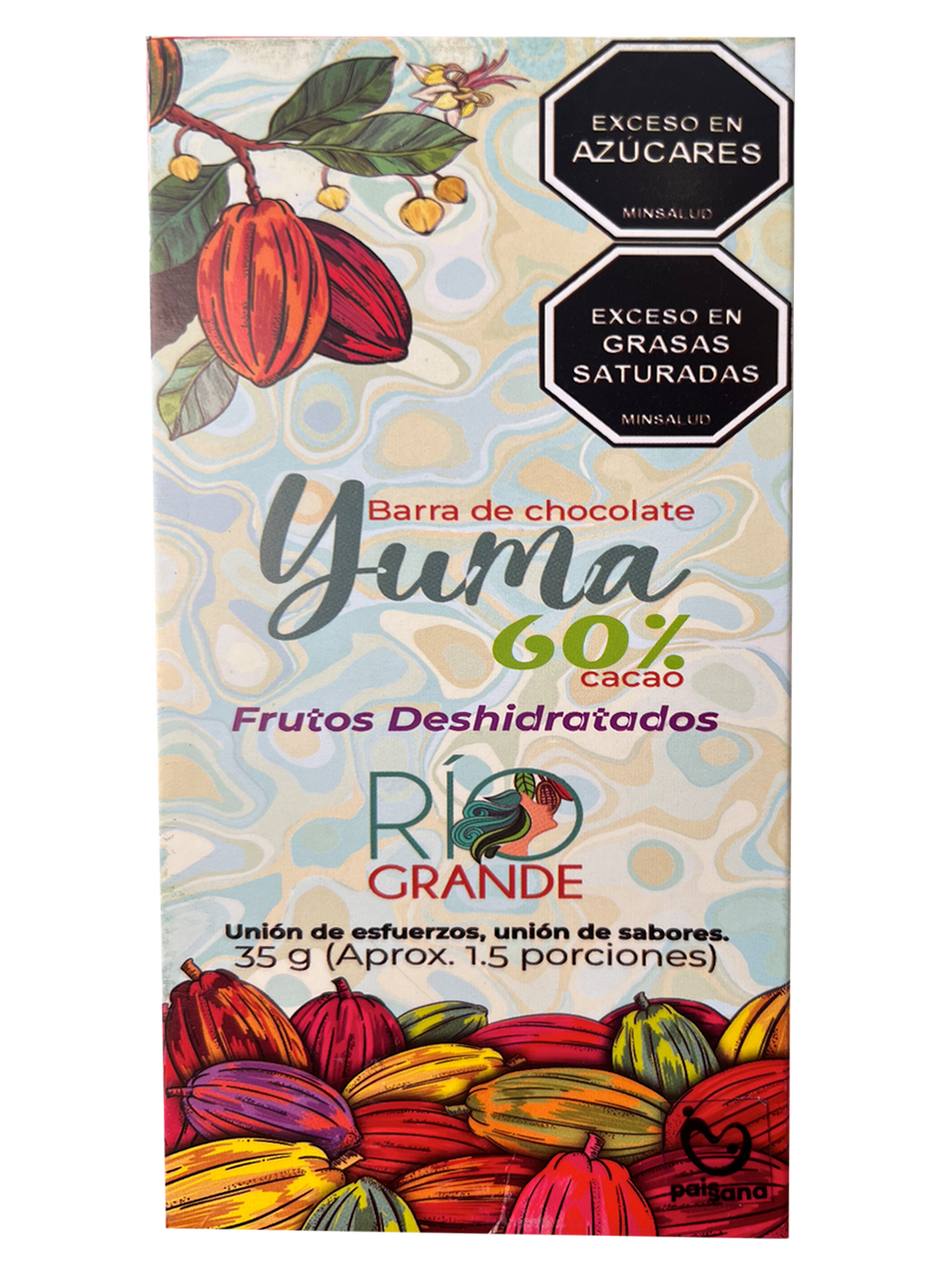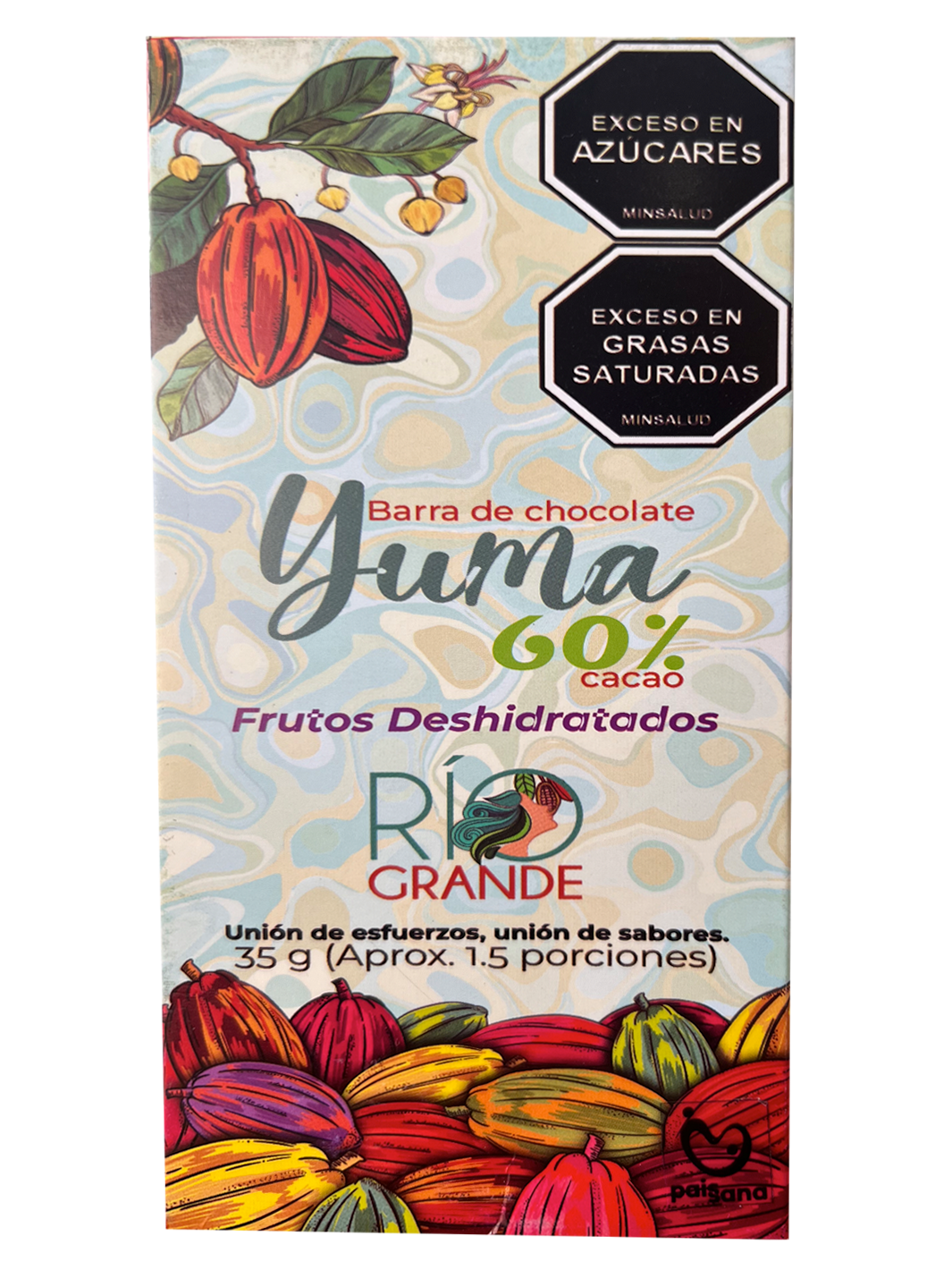 Chocolate 60% cacao. Este chocolate es un homenaje al trabajo incansable de las familias cacaocultoras.